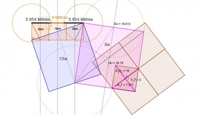 Et le carré du Chahar Taq fait bien la même surface, 2 Meh que le double carré, soit un carré de 7.40 mètres de côté !