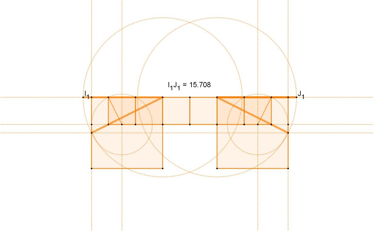Avec les deux premiers carrés plus 1/phi, nous allons dessiner un grand carré, aussi avec les deux derniers plus 1/Phi !