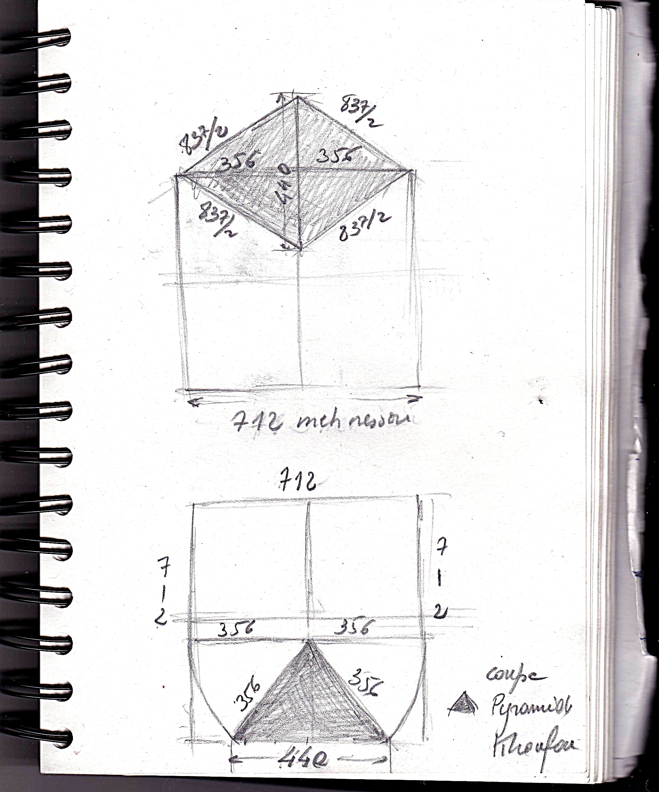 Pour évoquer un cercle de circonférence correspondant à notre fleur préférée, les anciens savaient ainsi qu'ils pouvait le faire à partir d'un rectangle de 220 x 280, qui pouvait être symbolisé aussi par une pyramide de base 220 et de 140 de hauteur ... Dès lors le cercle n'a plus besoin d'être matérialisé physiquement dans leur système de représentation.