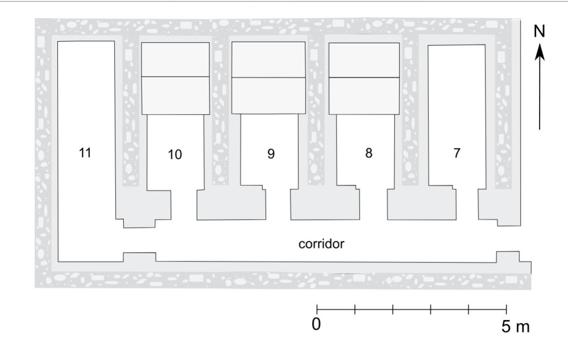 L'autre moitié Est détermine une autre ouverture, celle de la première pièce EST, marquée 8.