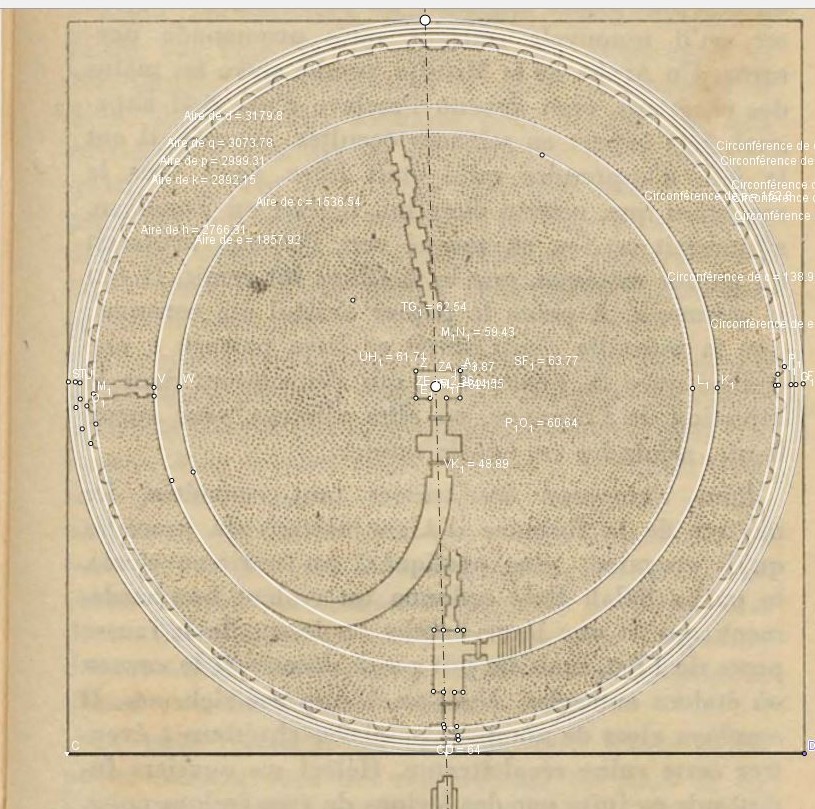 Le cercle sur lequel s'appuie les demi colonnes fait en surface un Setjat Égyptien.