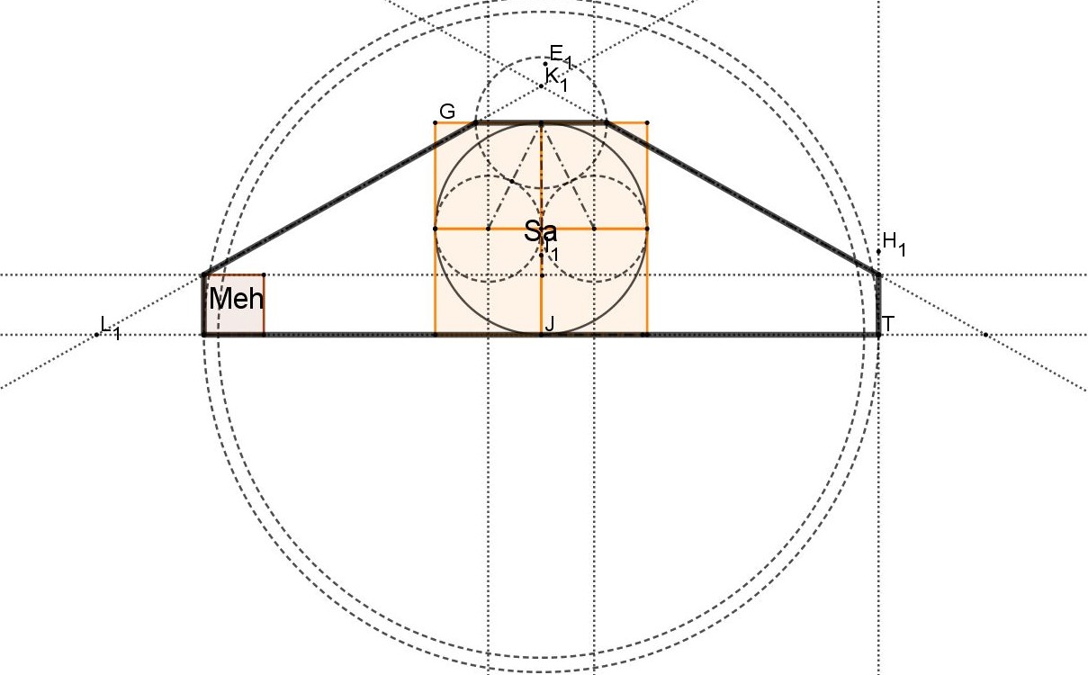 Plate forme en haut de 11.44 mètres, l'exact 18.512 divisé par Phi, le nombre d'or.
