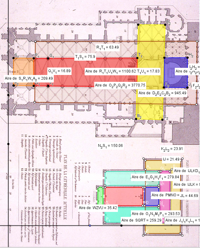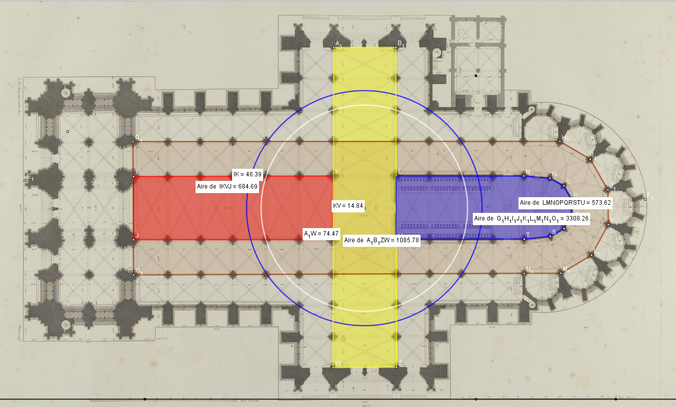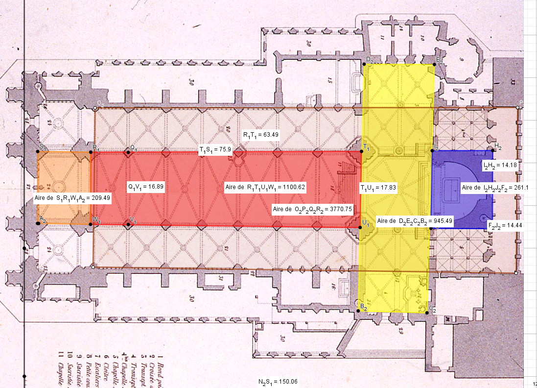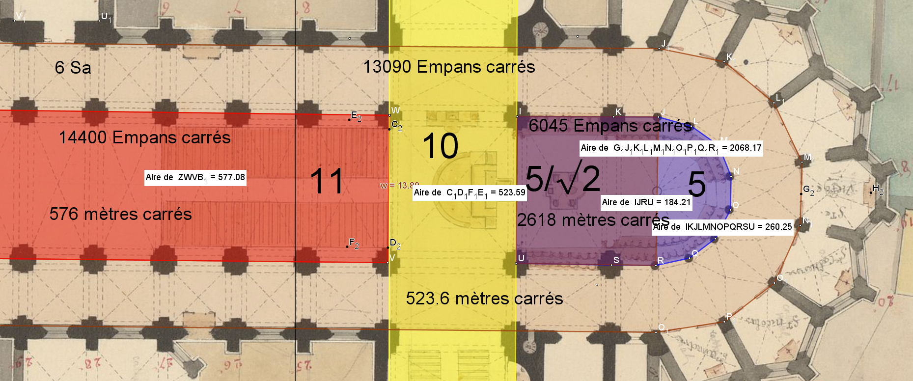 Et me vient à l'esprit en regardant mes grilles de calcul, que les Nefs de Notre Dame et de Saint Denis et le Transept de Chartres sont très proches et correspondent en surface à 3 Cha Egyptiens.