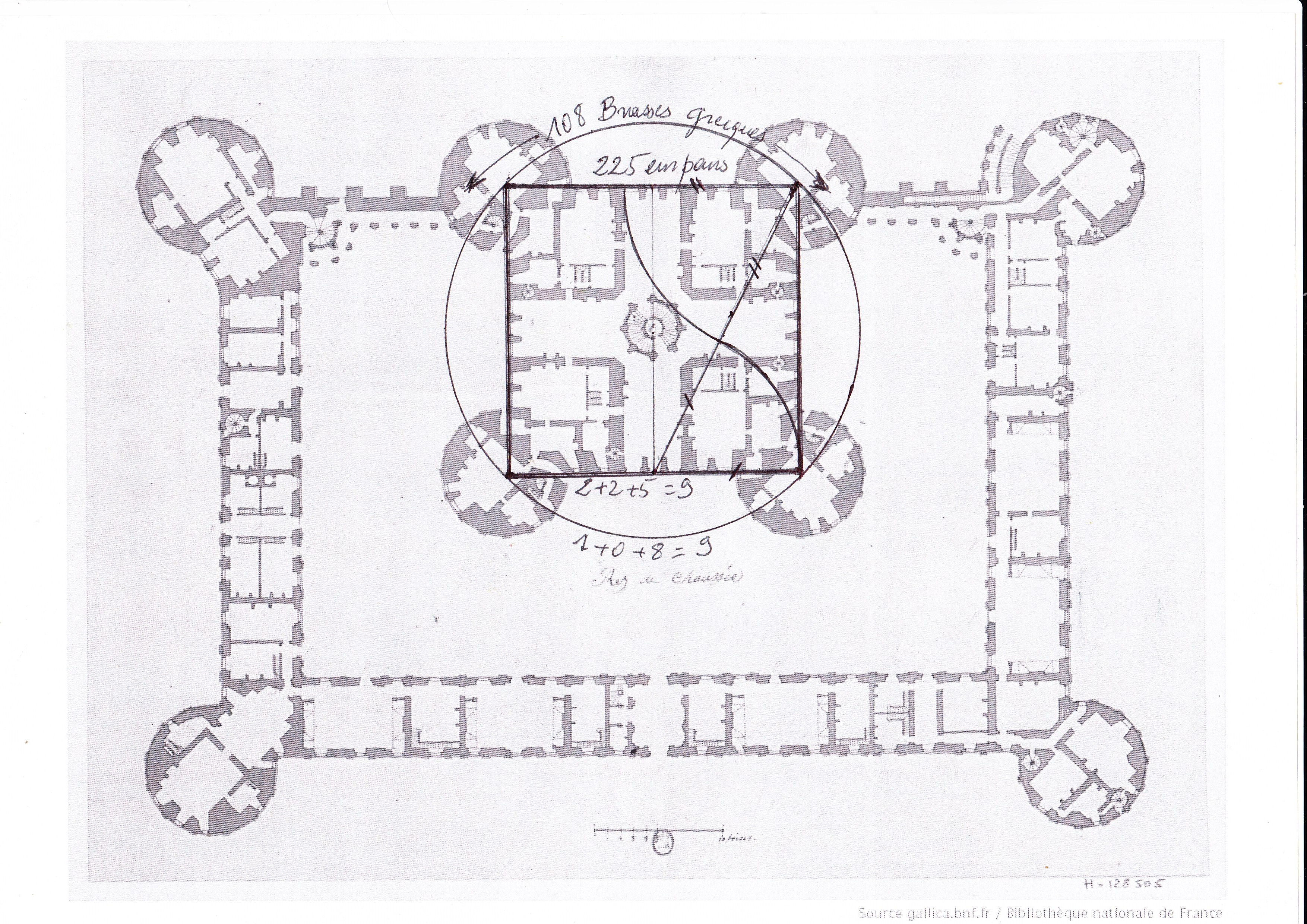 En effet le cercle qui passe par le centre des divines bouteilles, les tours, fait 108 brasses grecques de circonférences, brasse grecque que connaît parfaitement Da Vinci, brasse grecque qui est aussi l'Hépèt Egyptien de 99 djebâ.