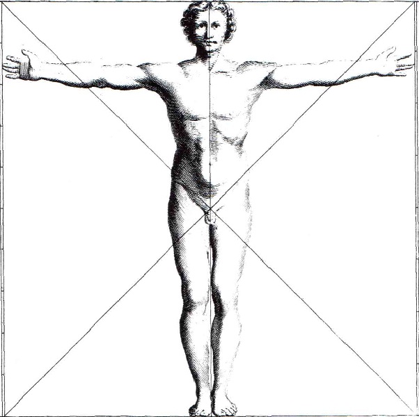 Et finalement on ne peut qu'être frappé par la similitude de triangles comptant cercles intérieurs et extérieurs dans son Homme de Vitruve et celle de ses derniers dessins comme ce triangle inversé là :