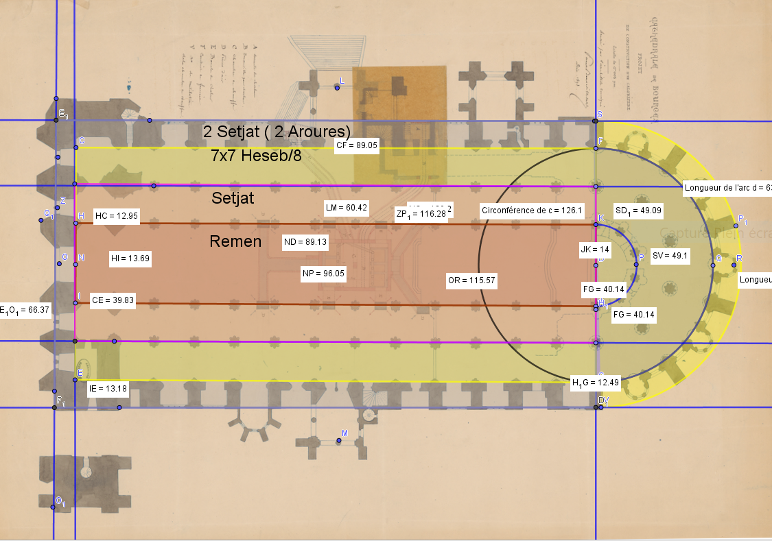 Mais n'oublions pas qu'un carré Setjat a son cercle de même surface qui fait 100 pieds romains de rayon !