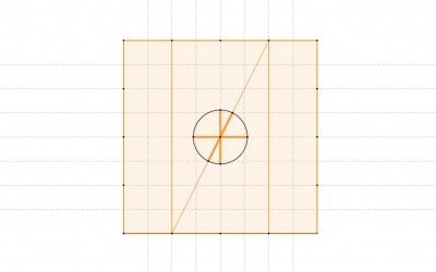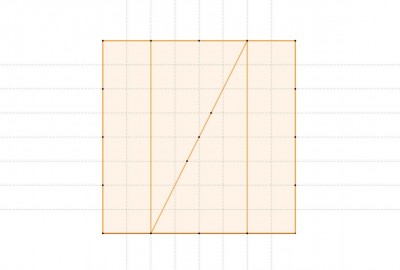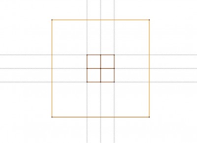 En proportion, en pointant quatre carrés au centre, nous avons divisé notre diagonale en quatre parties égales.