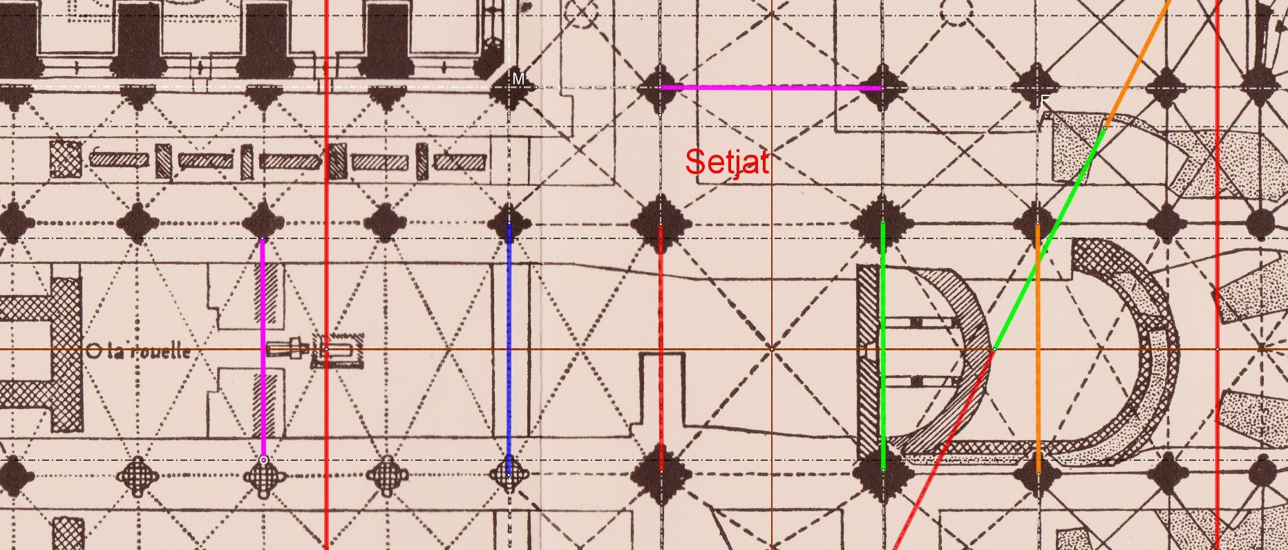 Nous trouvons l'aroure, le Setjat Egyptien toujours aussi présent, outil des maitres d'oeuvres Coptes, transmis à Byzance, en Arménie, dont hérite le Maitre d'oeuvre Tiridate à Ani.