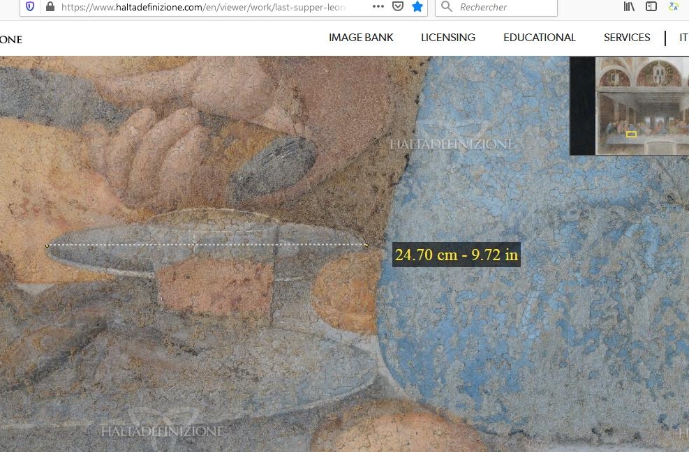 Hauteur de l'Ymage, la Cène, de l'Ymagier Da Vinci, en comptant les bords noirs en haut et en bas 4,594 mètres.