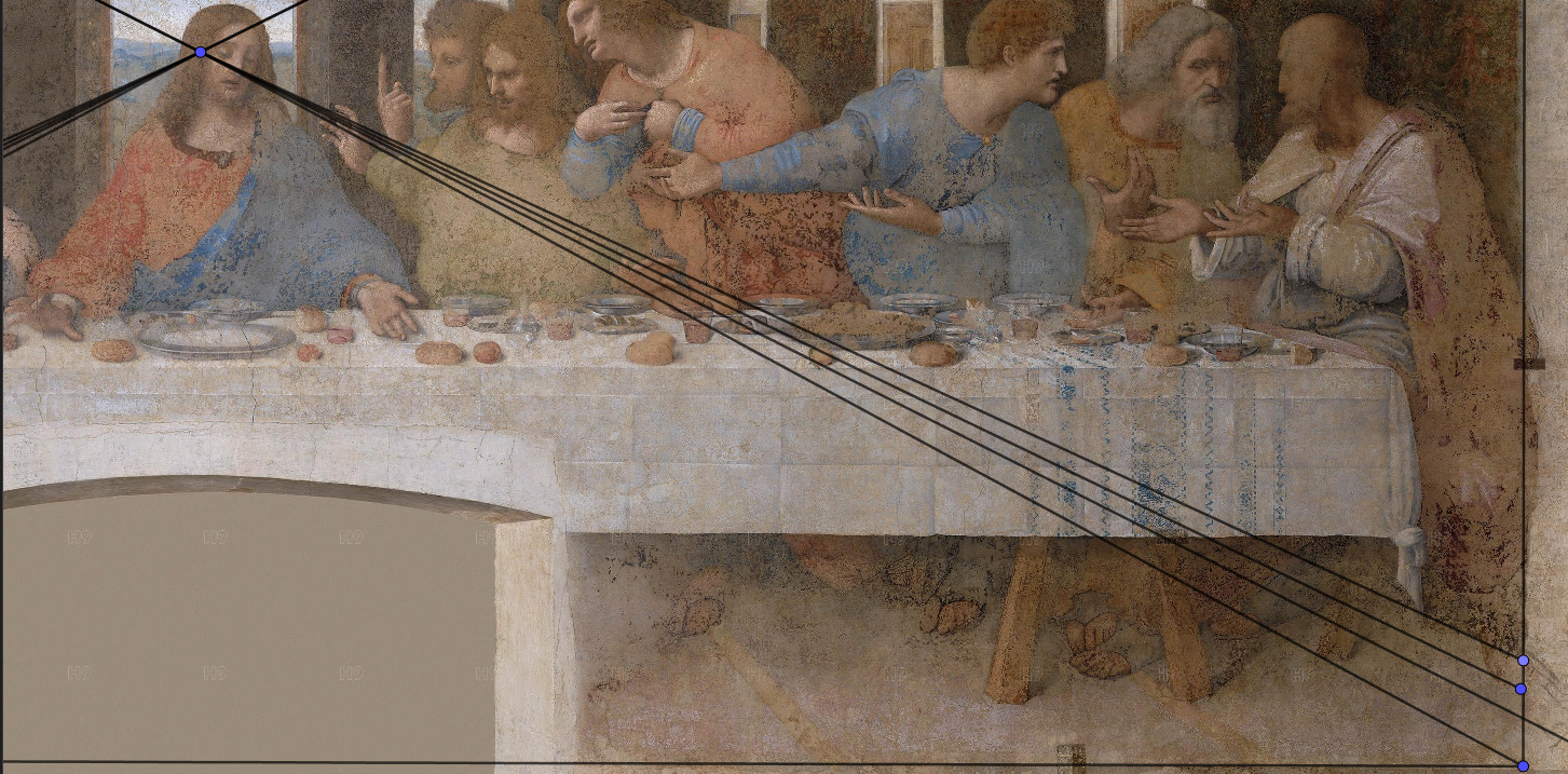 C'est avec les quatre coudées Égyptiennes, circonférence de la table, que Da Vinci fera la périmétrie du carré formé avec le fond de la pièce et la nappe de la Cène.