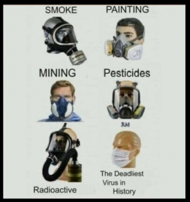 L'obligation gouvernementale faite à la population saine de porter d'un masque inutile et toxique ne relÚve que d'une volonté de voir tomber les gens malades par privation d'oxygÚne, sinon par effet nocebo, par refus d'accÚs aux médecins et aux remÚdes efficaces, par dépression sociale, privation de liens sociaux, retards mentaux, tortures des enfants, obligation de se soumettre à des expériences médicales inutiles, mortelles ou gravement invalidantes, etc, etc ...