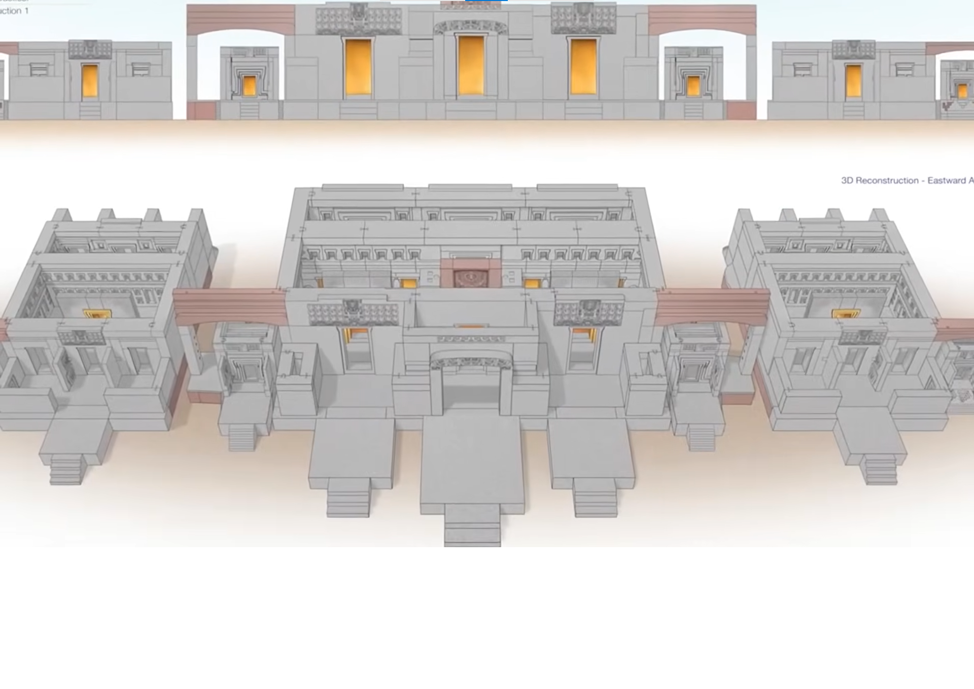 Ici dans cette reconstitution brillante, les bloc H ne sont pas indépendants mais font parties des grands monolithes, dans le bâtiment Nord et celui au Sud, plus petits que celui au centre.