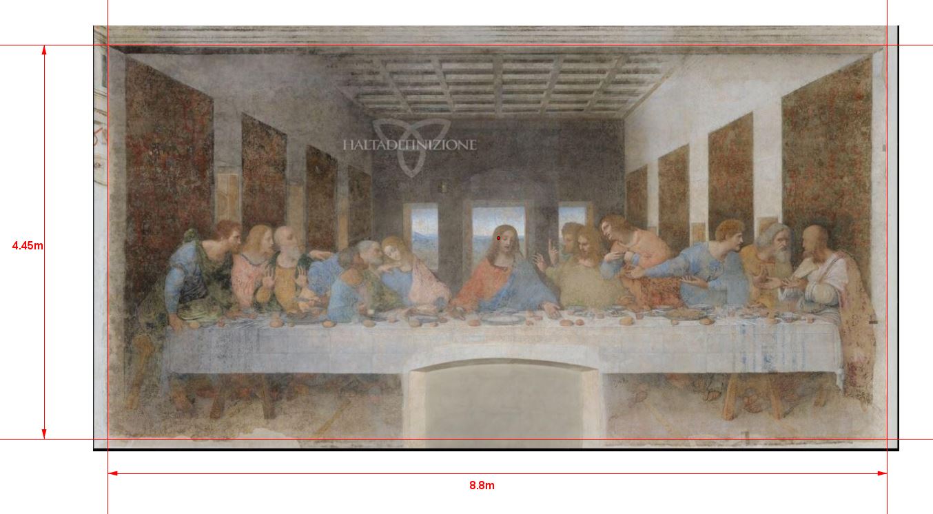 C'est avec les quatre coudées Égyptiennes, circonférence de la table, que Da Vinci fera la périmétrie du carré formé avec le fond de la pièce et la nappe de la Cène.
