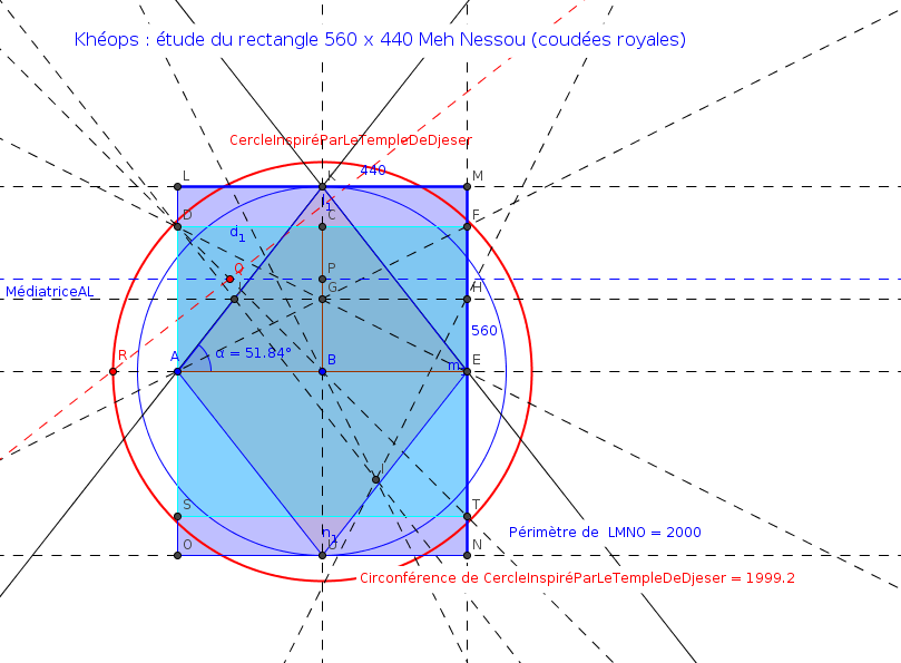Pour évoquer un cercle de circonférence correspondant à notre fleur préférée, les anciens savaient ainsi qu'ils pouvait le faire à partir d'un rectangle de 220 x 280, qui pouvait être symbolisé aussi par une pyramide de base 220 et de 140 de hauteur ... Dès lors le cercle n'a plus besoin d'être matérialisé physiquement dans leur système de représentation.