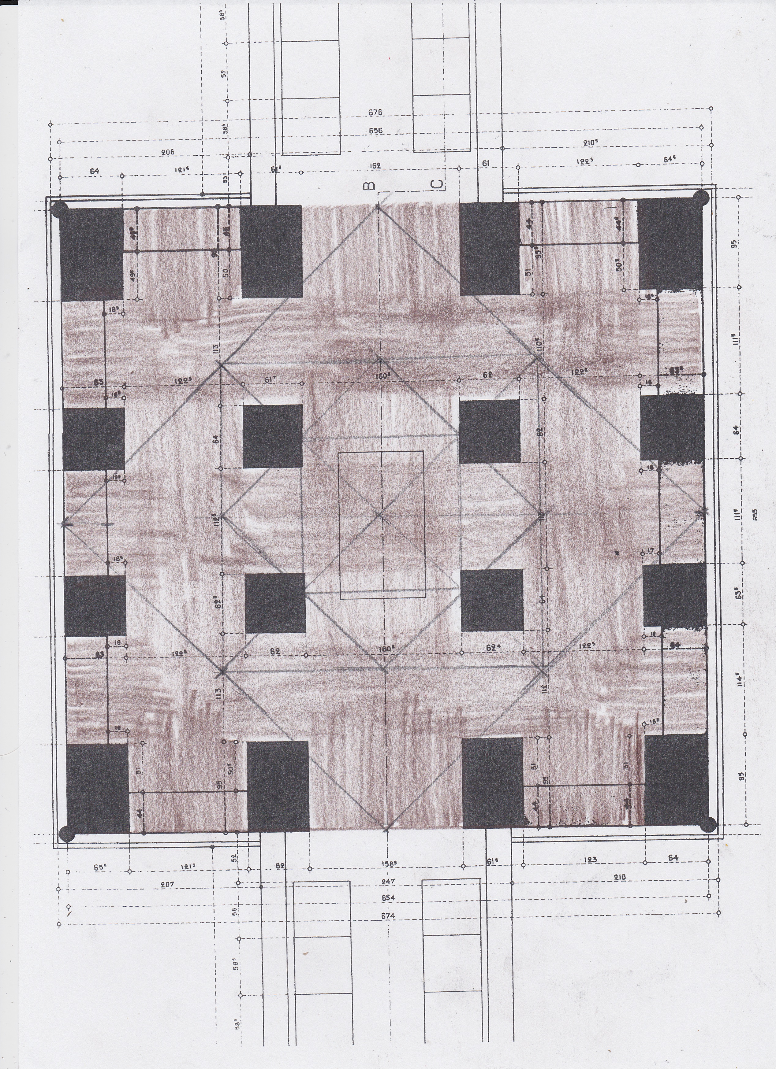 Une petite clarification de l'harmonie entre le carré du socle et les deux escaliers de part et d'autre.