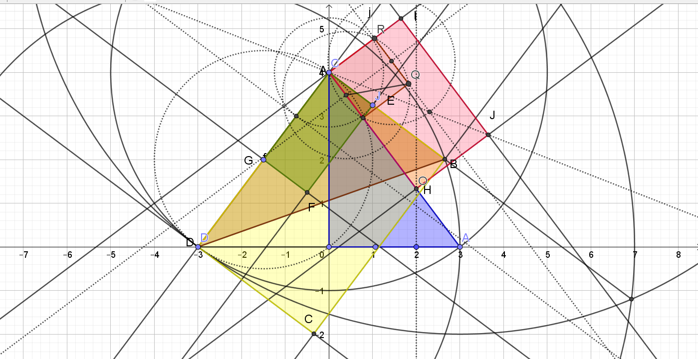 il y a bien sûr un tracé géométrique pour tracer des carrés et rectangle de même surface, mais ne sais toujours pas si l'Egyptien sait le faire, et bien que nous ayons vu que par les quadratures on y arrive aussi.