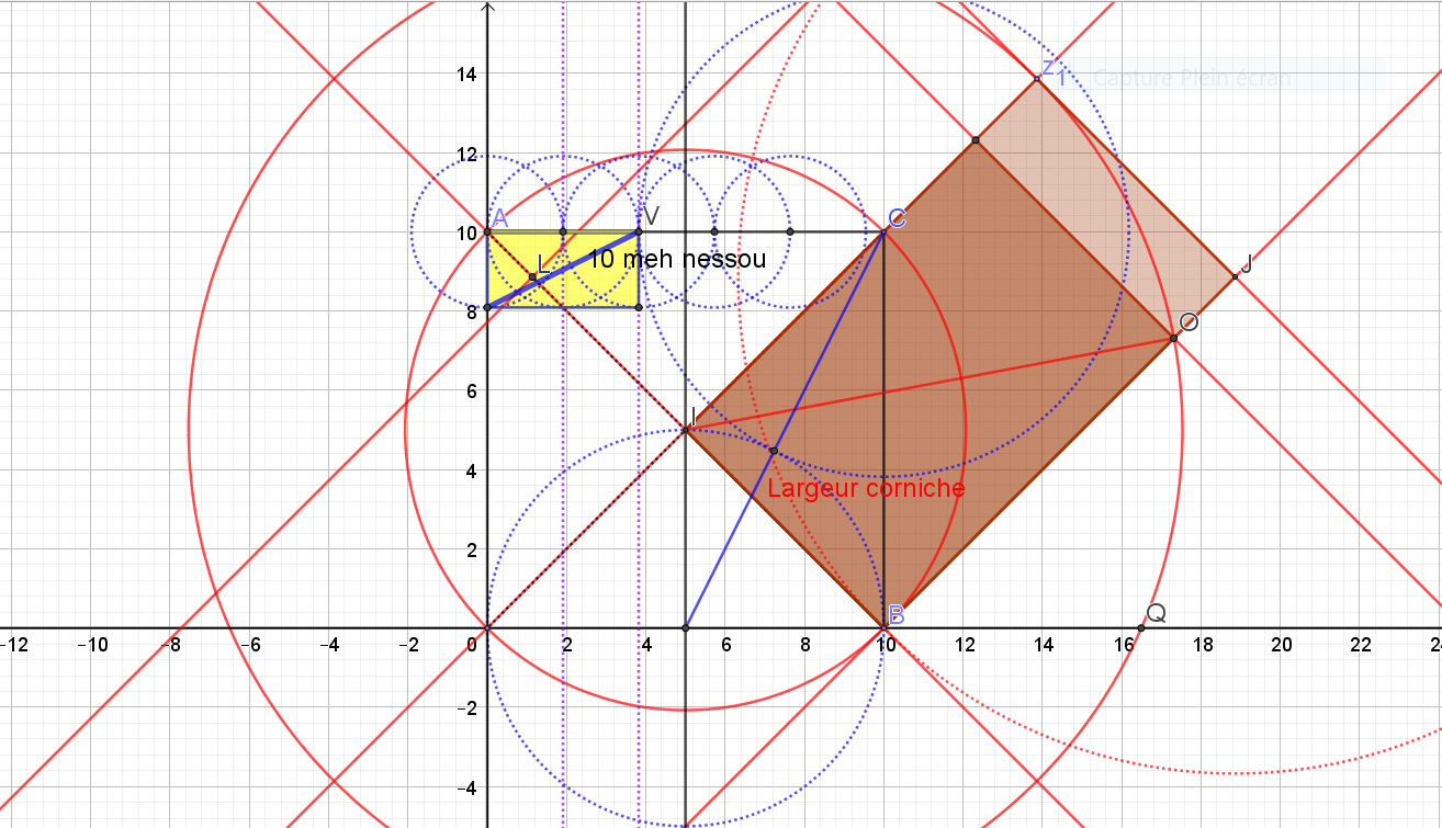 Comment peut on avoir 2.74 mètres du bas au haut de la corniche, alors que sur son dessin le rapport est de 1.977