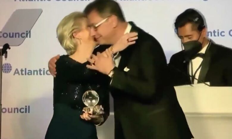Notre présidente bien aimée va-t-elle oser aller plus loin dans le rapprochement de l'Etat dans l'Etat..et dans quel état...jusqu'à échanger sur la joue du Dieu bizness man la salive et le souffle du nez, tempêtant ses protéines Spike, ses virus et bactéries par millions et peut être un COVID vite neutralisé par le Dieu Pfizer indestructible, Amen...
