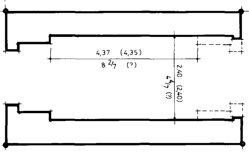 Comme par ailleurs, la largeur de 2.26 m intérieure détermine des murs dont la somme est de 1.620 m soit chacun 0.809 m