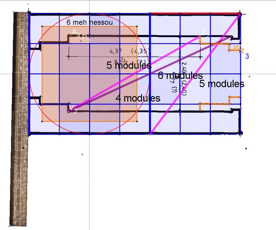 Et la coudée royale ou meh nessou de 7 shesep est la longueur du rectangle semblable à la Chapelle Thoutmosis