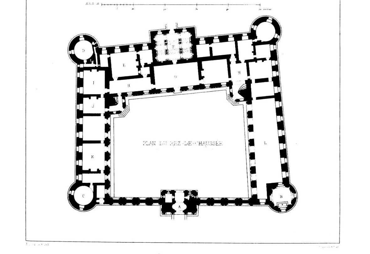 La géométrie au sol du quadrilatère a donc été élaborée au XIII ème siècle, siècle des grands bâtisseurs de notre histoire de France...