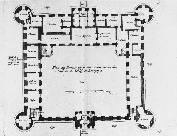 Oui...Tout comme une erreur ici, le chateau de Tanlay est un quadrilatère sans angle droit, aucun des côtés n'est semblable, mais ce plan donne les fonctions des différentes pièces.