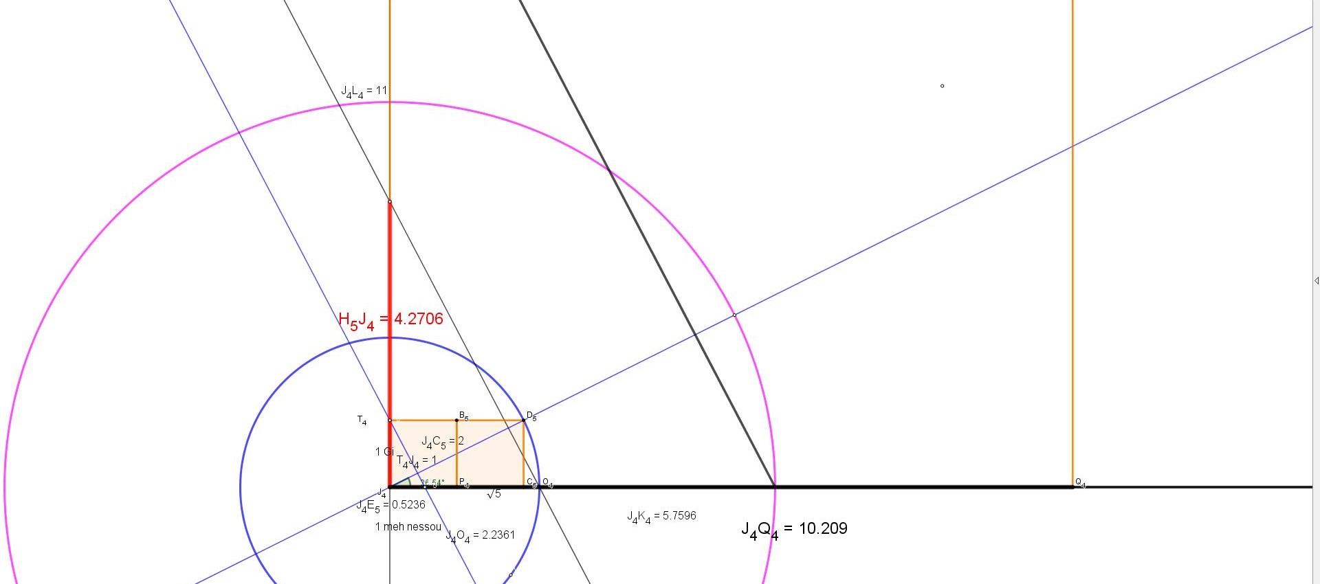 Observons bien nous allons tracer une des parallèles à l'hypoténuse de ce triangle qui passera par le point O4