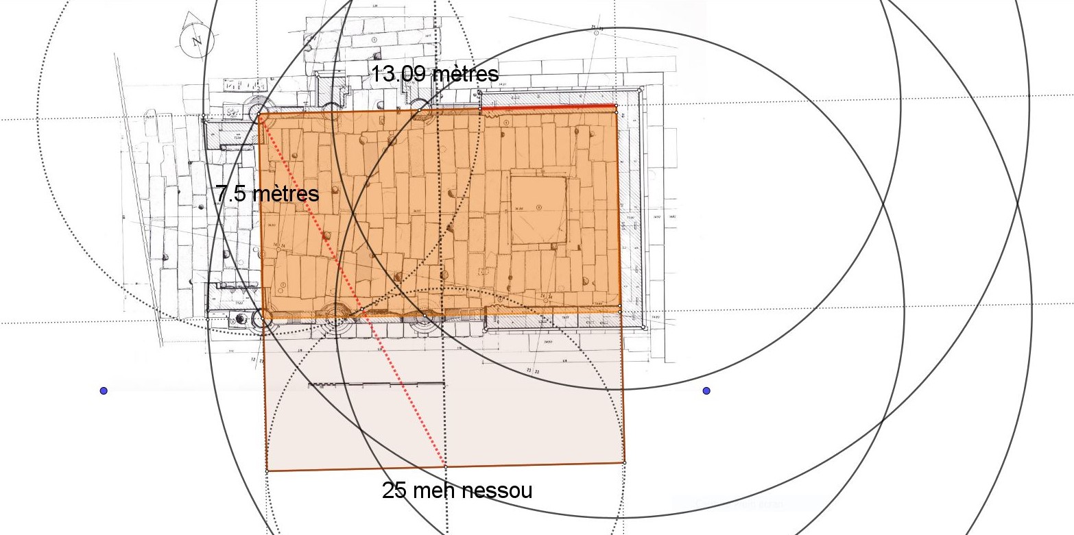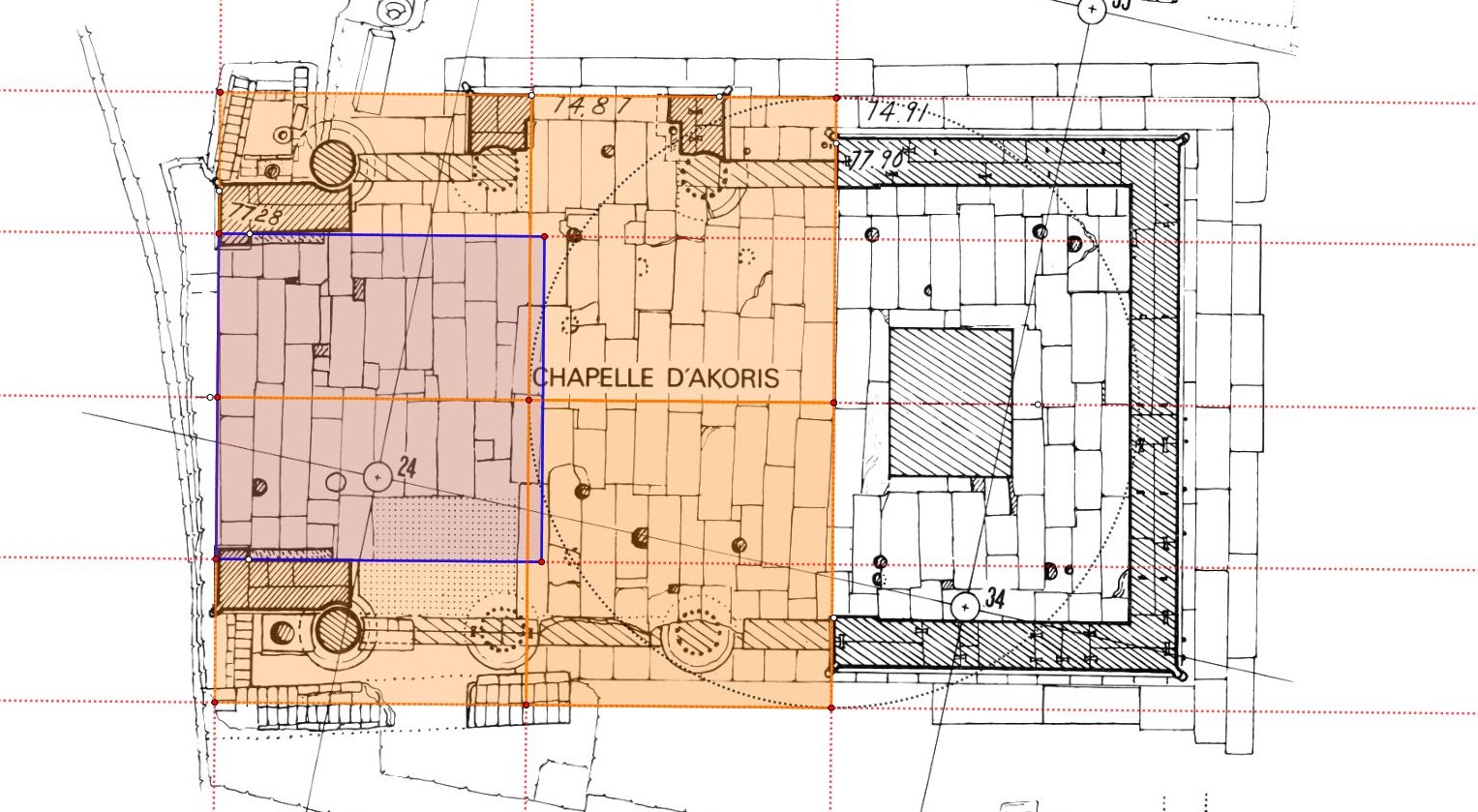 Pourquoi de carré Heseb parce qu'il va nous donner notre carré de départ du tracé de la chapelle d'Akoris et son cercle inscrit.