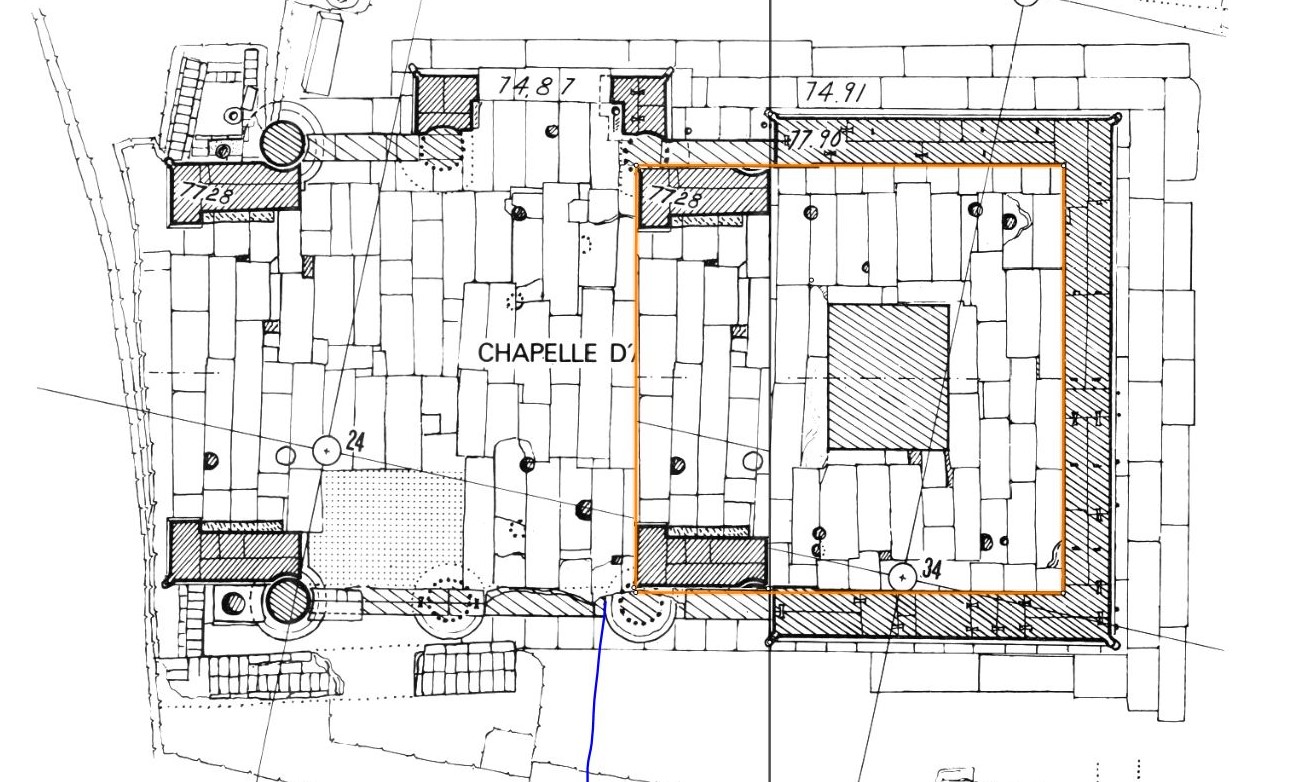 C'est notre premier carré ici reporter sur le plan de Jean Lauffray de la Chapelle d'Achôris.