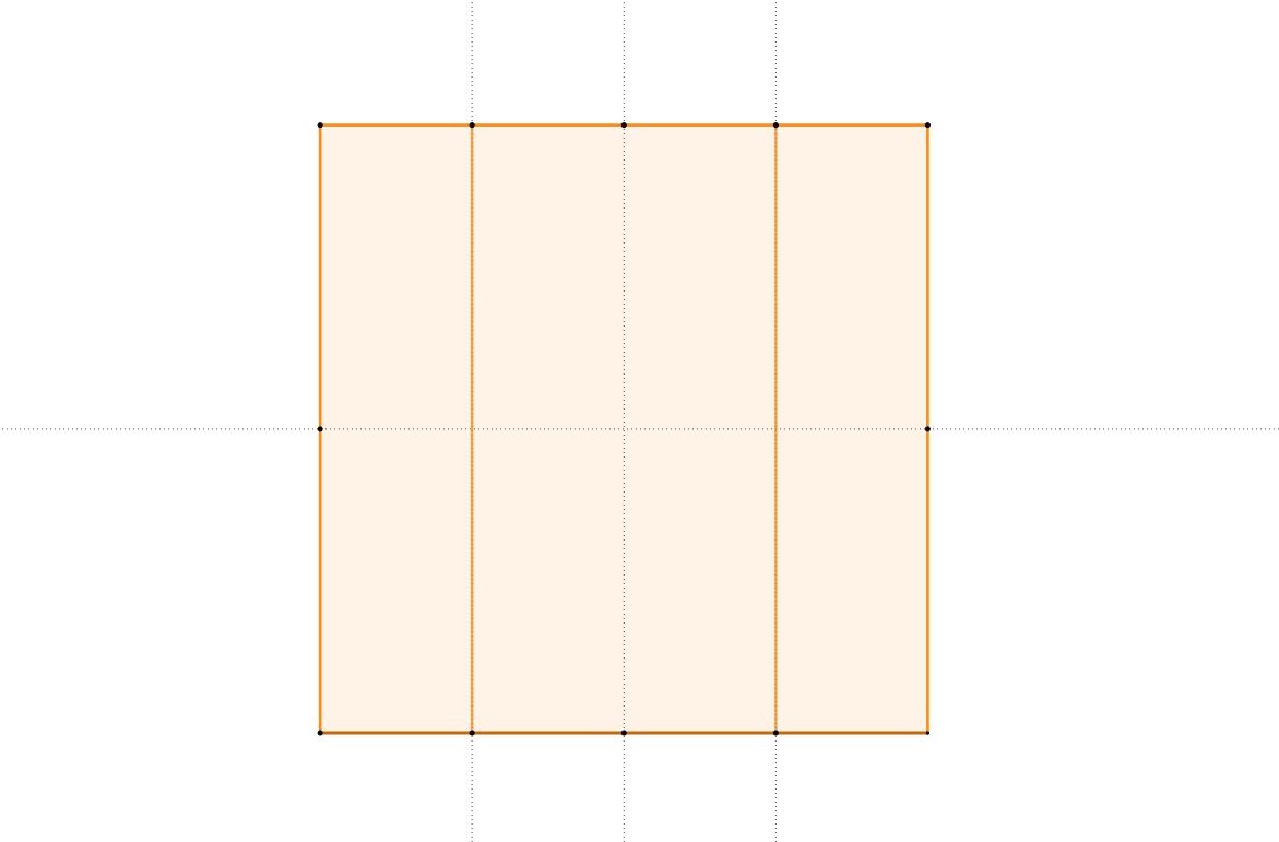 En proportion, en pointant quatre carrés au centre, nous avons divisé notre diagonale en quatre parties égales.