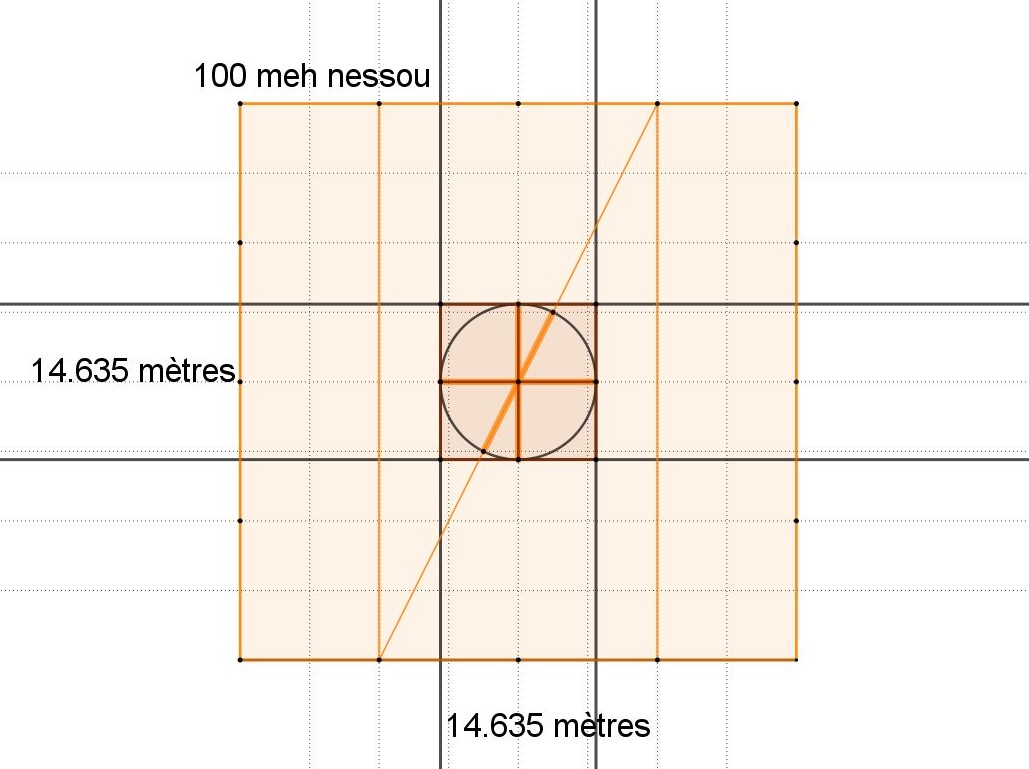 Soit un carré Setjat de 100 coudées Egyptiennes, 100 meh nessou de côtés.