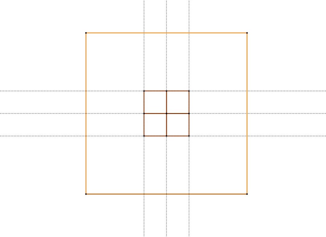 Tout simplement, au lieu de partager en deux doubles carrés, nous avons centré le double carré.