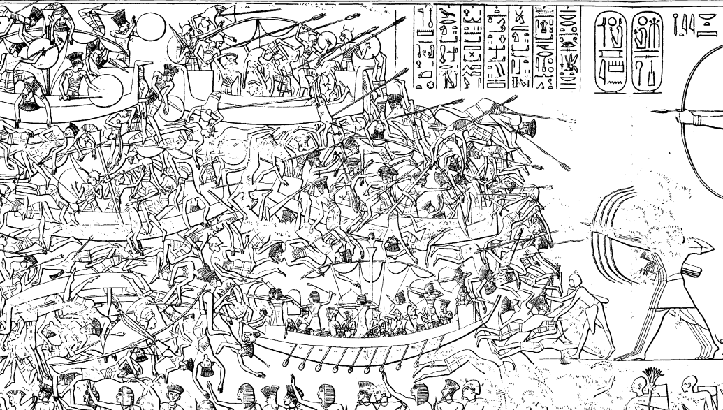 Pourquoi aussi s'embêter à faire des Nid de Pie confortables sur les bateaux pour les vigies, comme représentés sur les reliefs de la bataille navale de Médinet Habou (temple de Ramsès III, plaques 37–39 du volume I de l'Epigraphic Survey, 1930)