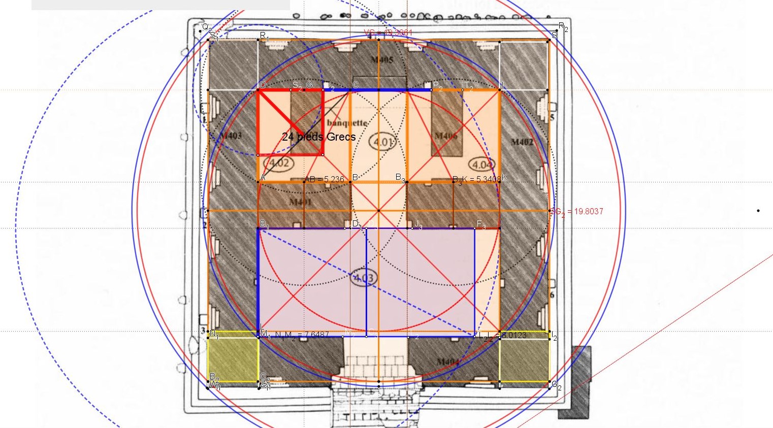 Le rectangle qui inscrit 402 M407 401 M406 404 fait, selon un rigoureux paramétrage, 5.24 mètres sur 13.70 mètres.( Tout comme les grandes pièces du Chateaux de Maulnes en France ainsi que Gopika à Barabar en Inde )