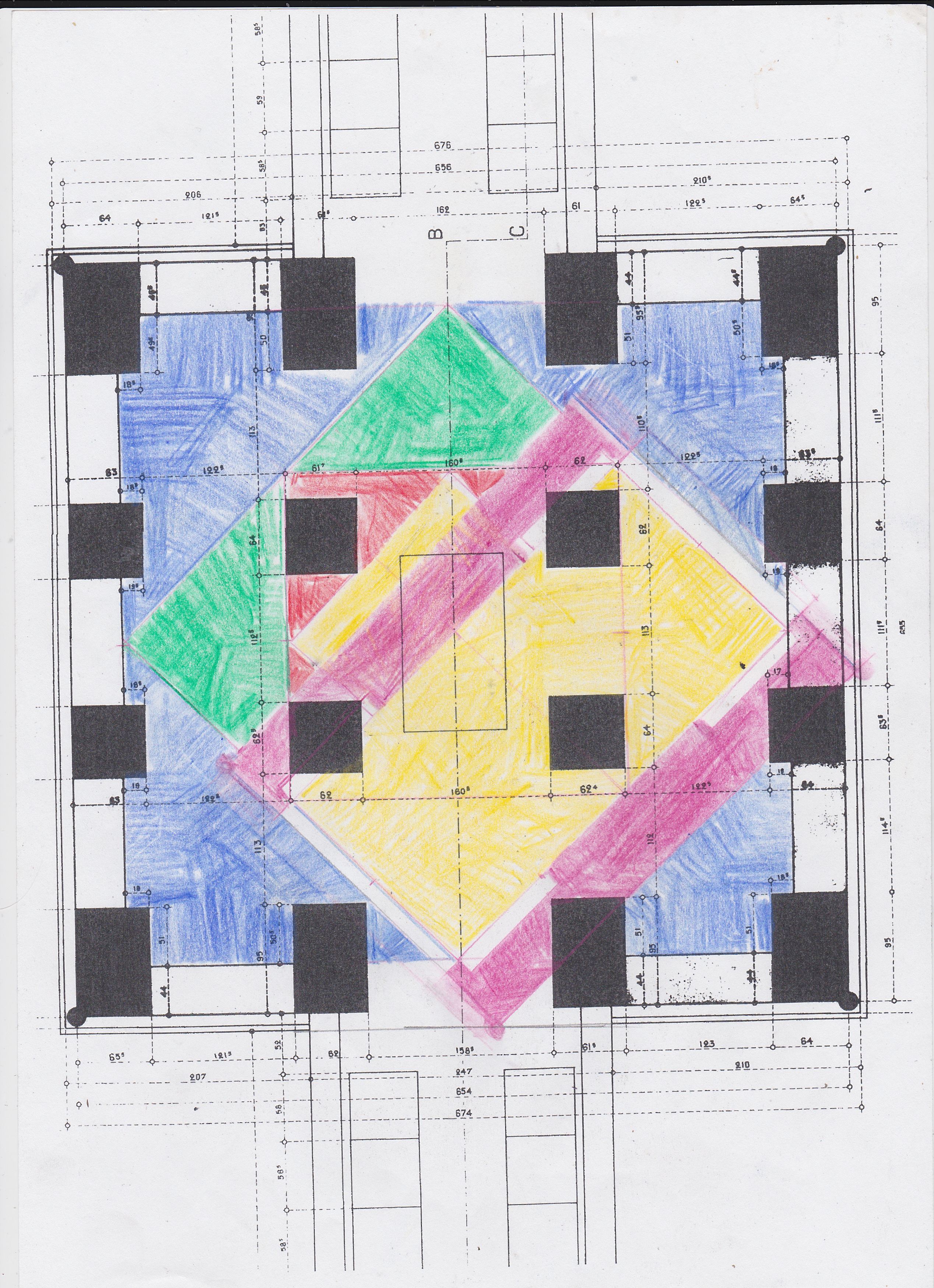 Une petite clarification de l'harmonie entre le carré du socle et les deux escaliers de part et d'autre.