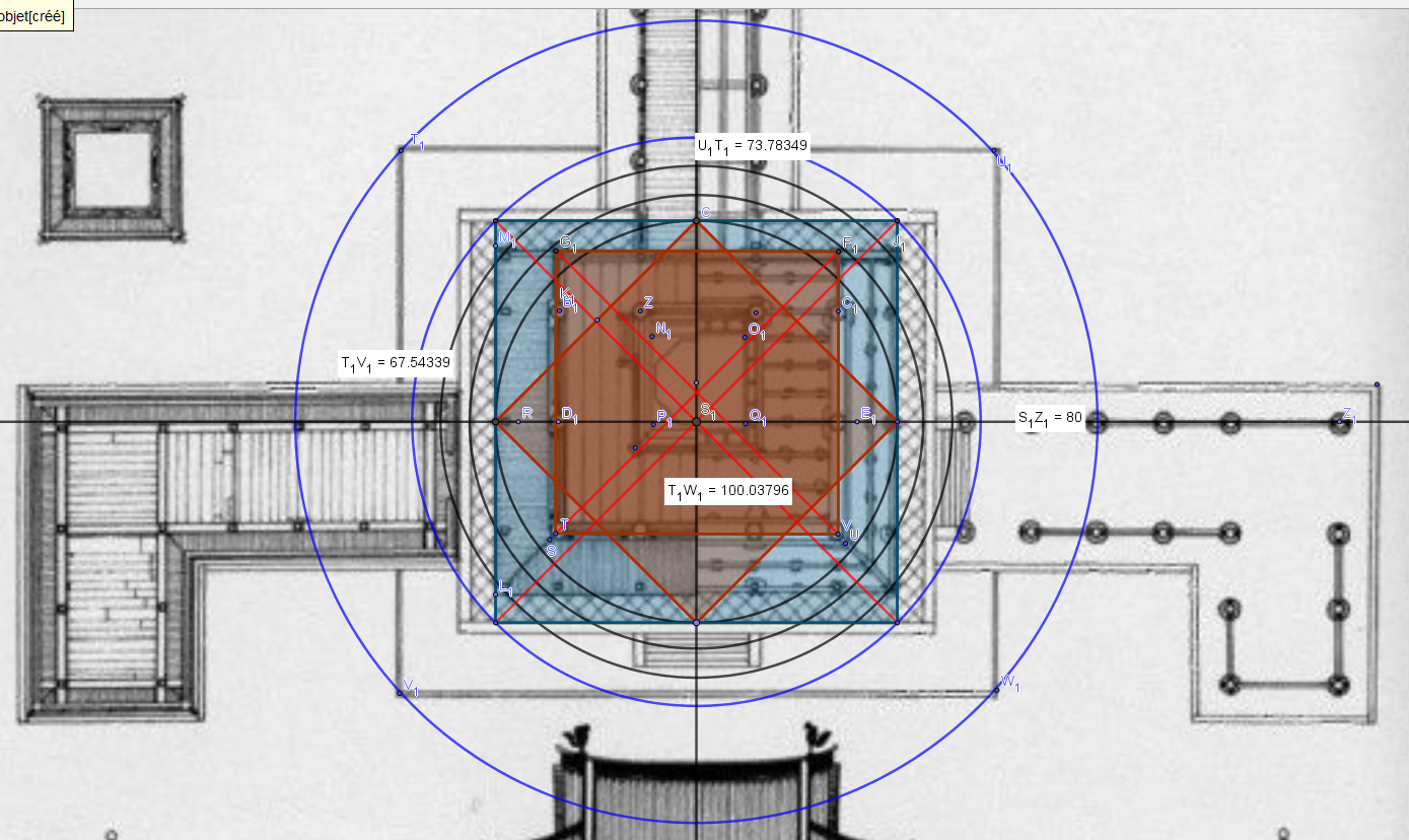 5000, 2500, 1250, celui de 1250 est le carré interne losangé qui se déplacera en G1, F1, V, T, dernier carré avant le cœur de l'édifice.