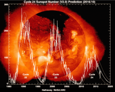 L'activité solaire a un impact indéniable sur le climat et elle connaît des périodes de suractivité alternant avec des périodes plus calmes. Chaque cycle a une durée d’environ 11ans.