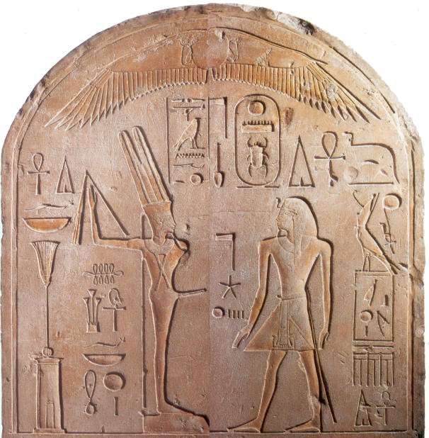 Document oi.uchicago.eu. à gauche Ramsès II avec une faucille, à droite le dieu Amon-min.