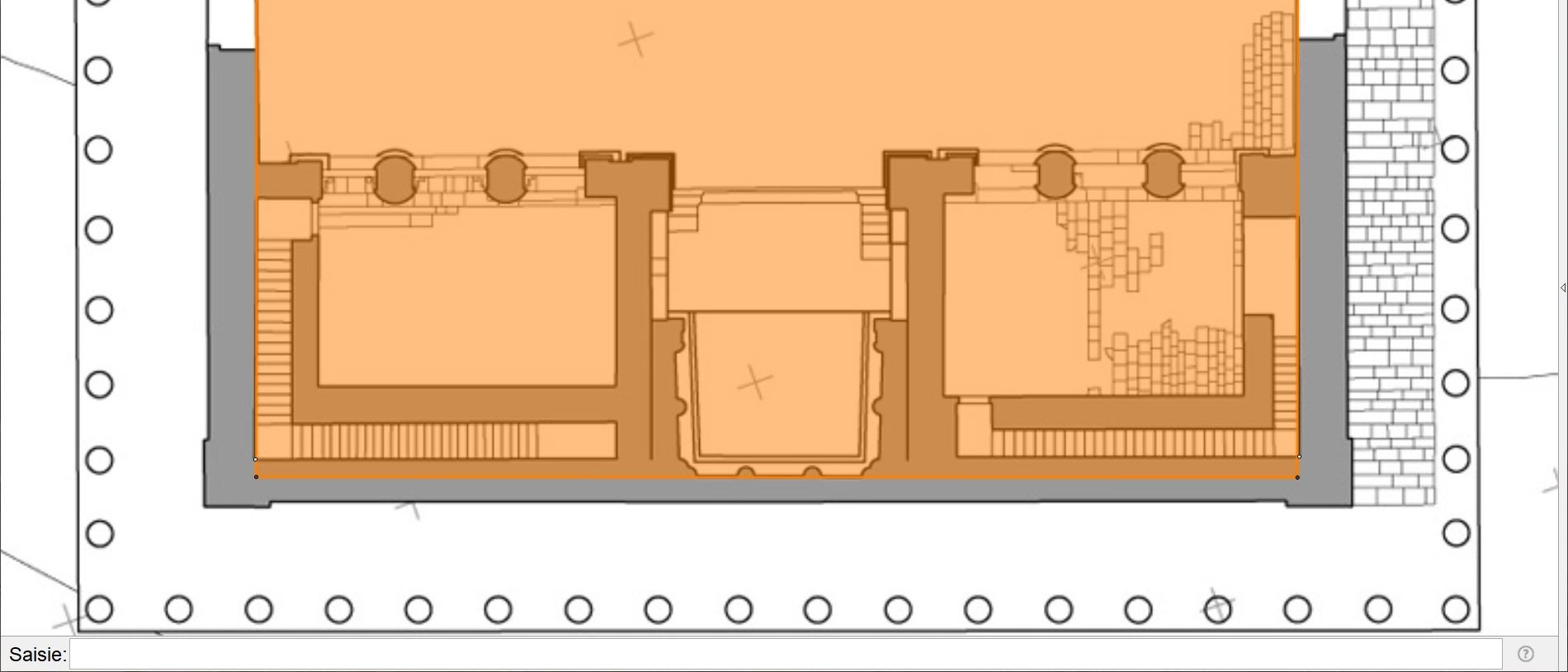 Nous avons tracé quelques carrés Meh, unité de surface Egyptienne, six au Nord et 6 à l'est...