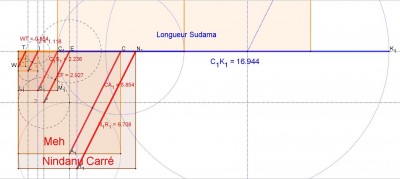 Mais c'est aussi le côté du carré Meh Egyptien, 10 meh nessou ( coudées royales) moins le rayon au sol de la rotonde de Sudama, un Gi Sumérien ou 3 Giri Sumériennes, ou Sépû Akkadiens ou 6 Kûs Sumériennes, ou 6 Ammatû Akkadiennes, ou 6 Aslû Babyloniennes.