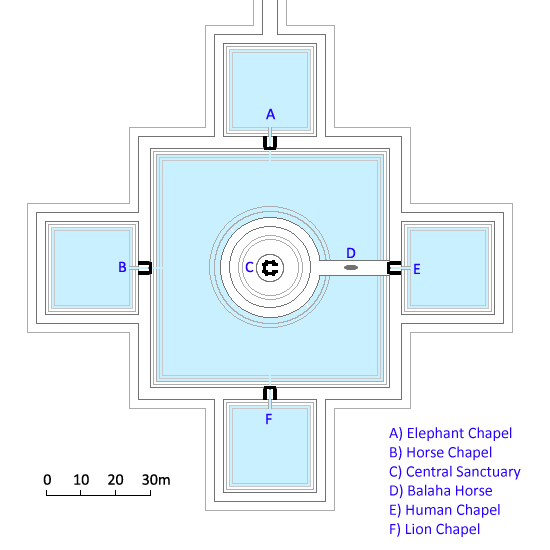 Rappelons nous de la constante au château de Maulnes en France, 6.854 mètres, dixième du côté du grand bassin de Neak Pean...Et c'est aussi à Barabar en Indes...68.54 divisés par 20, largeur de Vadathika et Vapiyaka