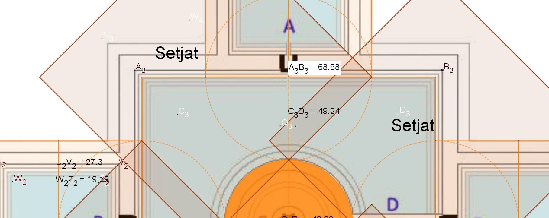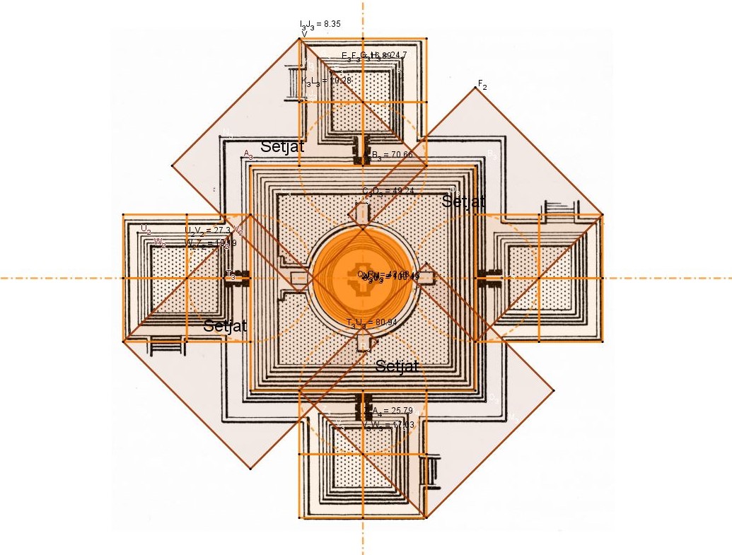 Nous allons donc travailler sur "l'hypothèse" confirmée par la mesure du satellite, soit 68.54 mètres pour le côté du grand carré du bassin central
