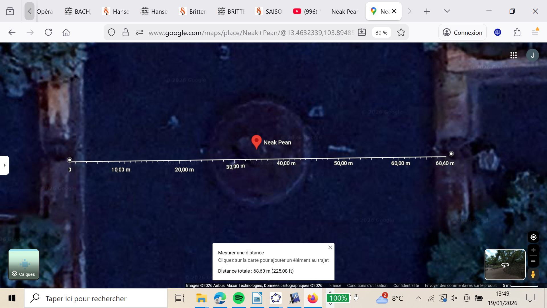 La mesure donnée pointée aux bons endroits est de 68.6 mètres.