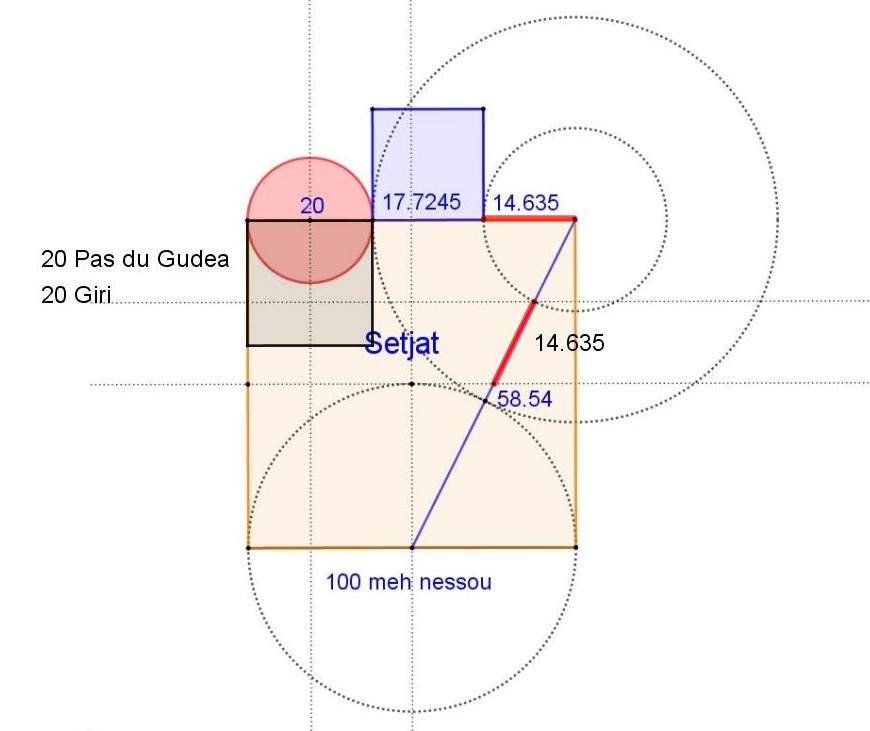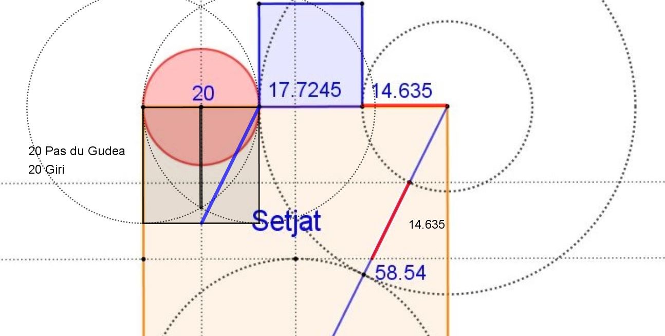 Mesures qui ont pris naissance dans le carré Invisible tracé par le Gudea sur la terre avec ses 20 pas de côté pour son carré initial.