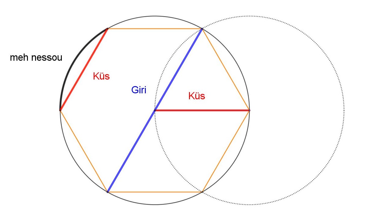 Tout comme la mesure de la Küs Sumérienne est la corde, et la meh nessou Égyptienne, son arc, dans un cercle d' 1 Girl de diamètre...