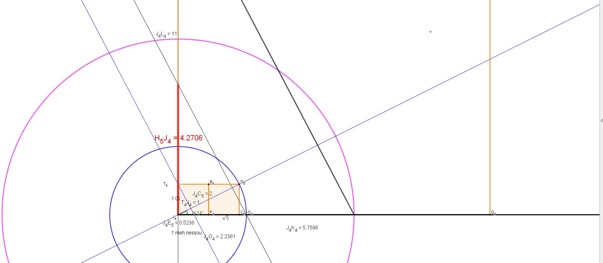 Par contre comme tout ici est quadrature et qu'on a de plus l'utilisation de la racine de 5, on risque de tomber sur ce 0.854 mètres !