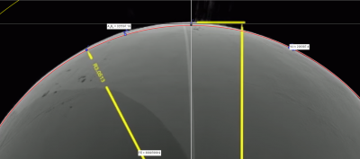 En observant cette élévation, deux mesures attirent irrésistiblement notre attention, c'est bien 2.828 m (CK) rayon de la base du dôme et 1.852 m (TK) la hauteur du sol jusqu'au dôme de l'hémicycle.