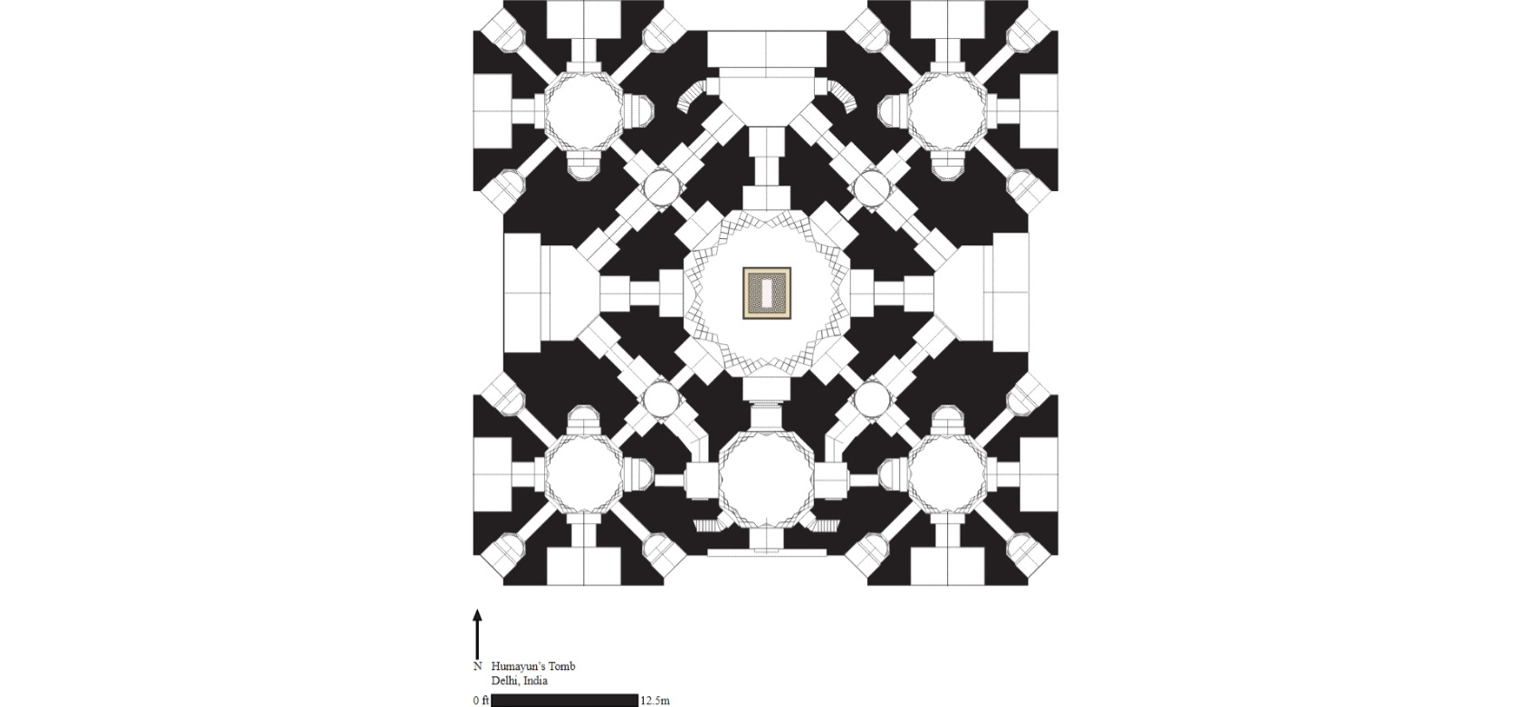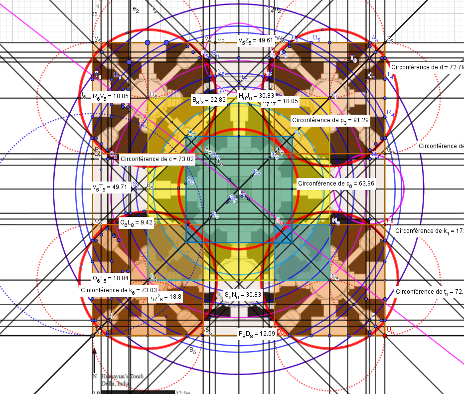 Les quatre carrés oranges ont leur cercle périmétrique qui viennent couper les coins de Humayun....
