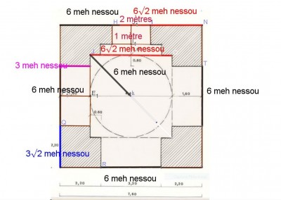 Et le carré du Chahar Taq fait bien la même surface, 2 Meh que le double carré, soit un carré de 7.40 mètres de côté !