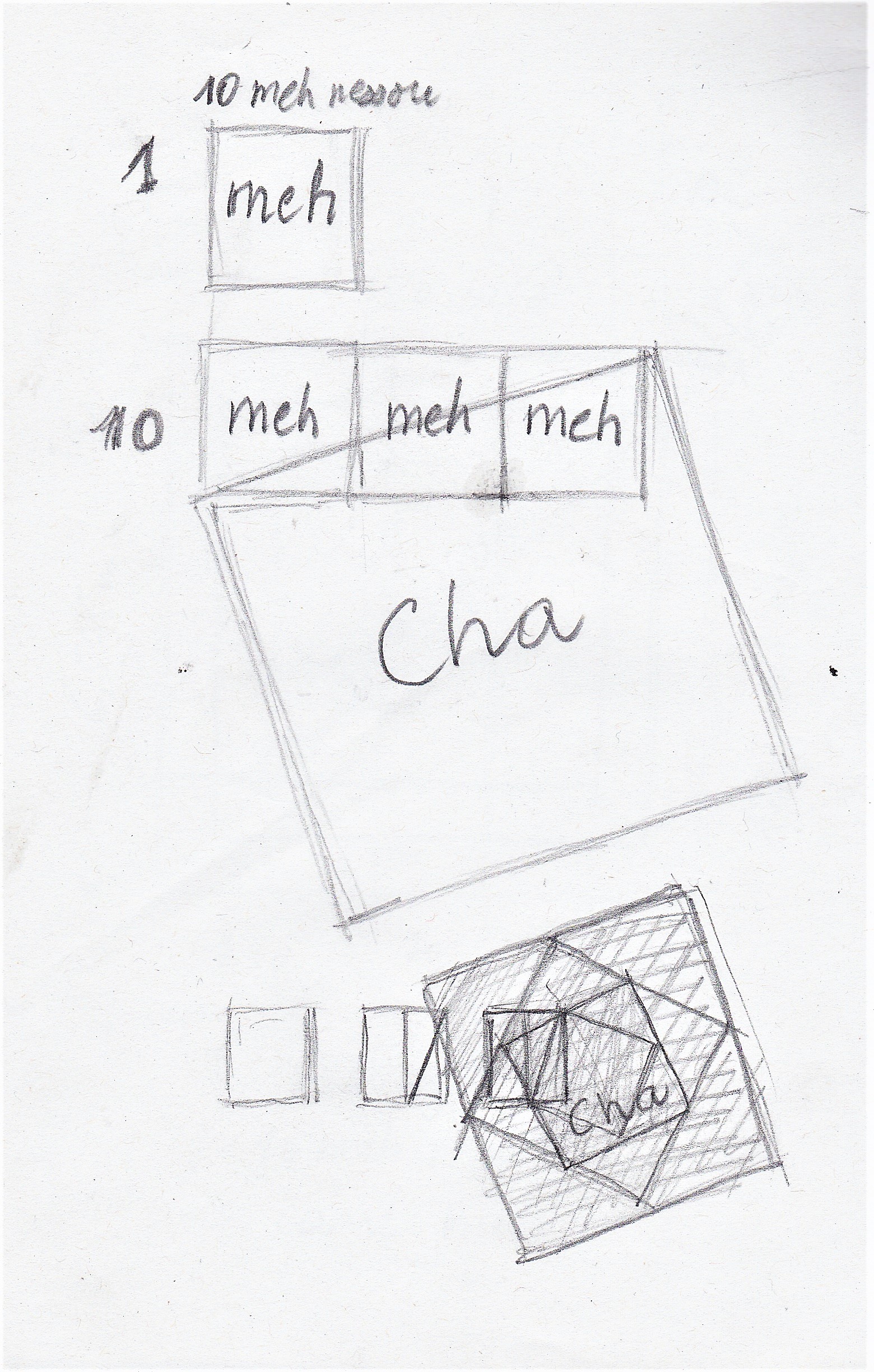 Tout comme nous étions passés du Meh au Cha, nous dessinons des carrés concentriques de surface double.
